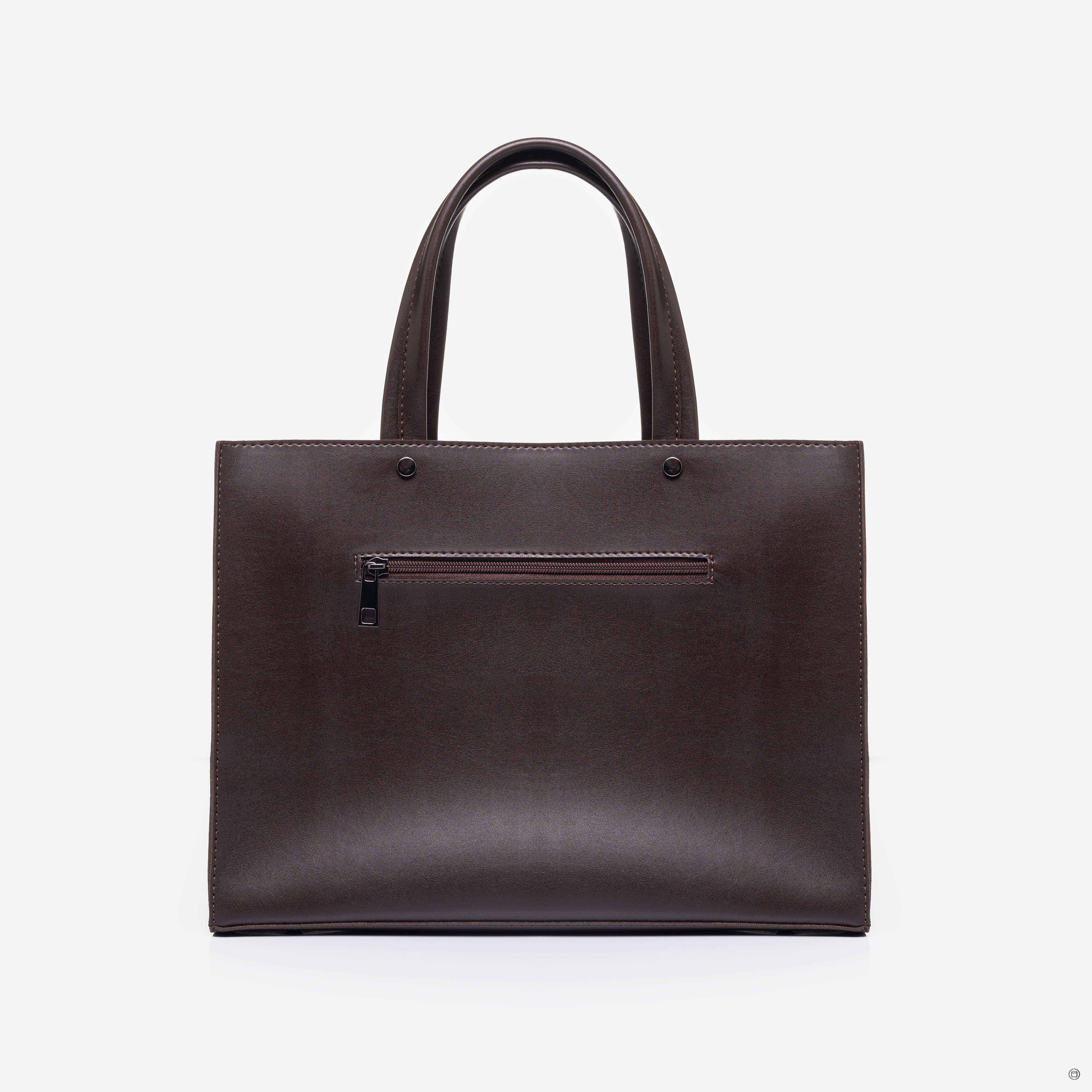 Сумку, з простим кроєм та мінімальним оздобленням, виконано з шкірозамінника високої якості, щоб її використання було максимально тривалим та приємним.  Сумочка має дві короткі ручки, які розраховані на комфортне транспортування в руці. До комплекту входить довгий регульований ремінець. Задня стінка оснащена врізною кишенею на застібці. На дні встановлені металеві ніжки. Весь виріб зачиняється на блискавку.