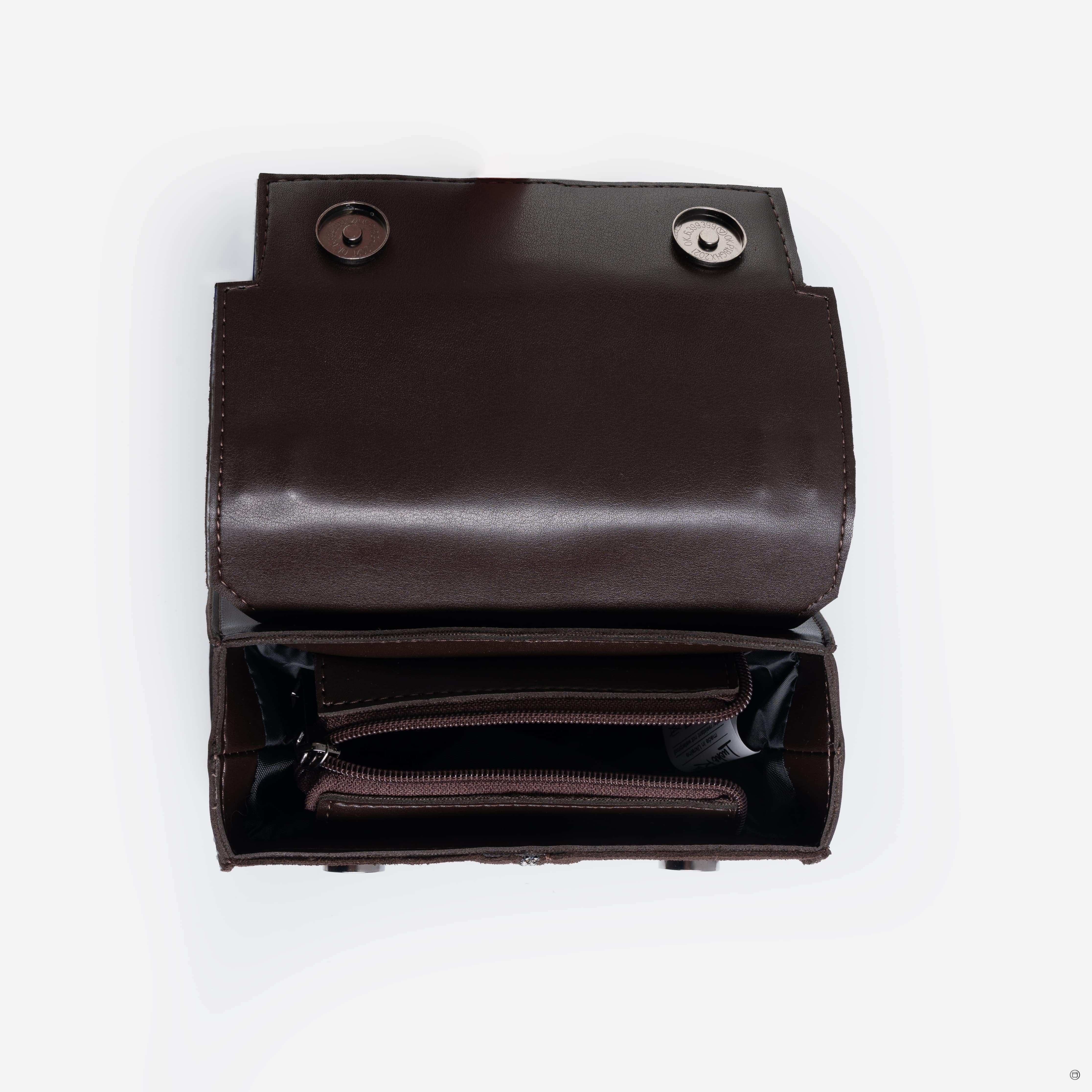 Невелика жіноча сумочка виготовлена з високоякісного шкірзамінника та якісної надійної фурнітури в кольорі - нікель. Одне відділення зручно розмістить великий гаманець, мобільний телефон та необхідні дрібниці. Всередині також розташована одна кишеня на застібці.